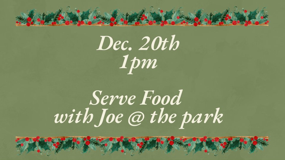 Come together to support our community! Serve food with Joe for those in need at Buckingham Park.