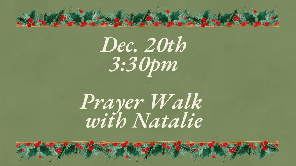 Join Natalie on a prayer walk this Christmas season! We will be meeting near the fountain in Old Town Square.