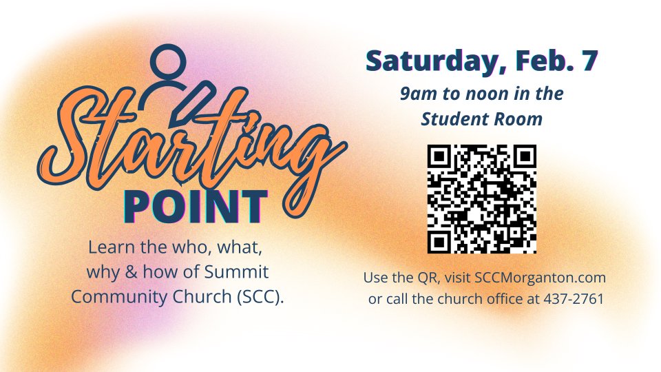 At Summit Community Church we value church membership. Starting Point is a special class to help you get started on your journey.