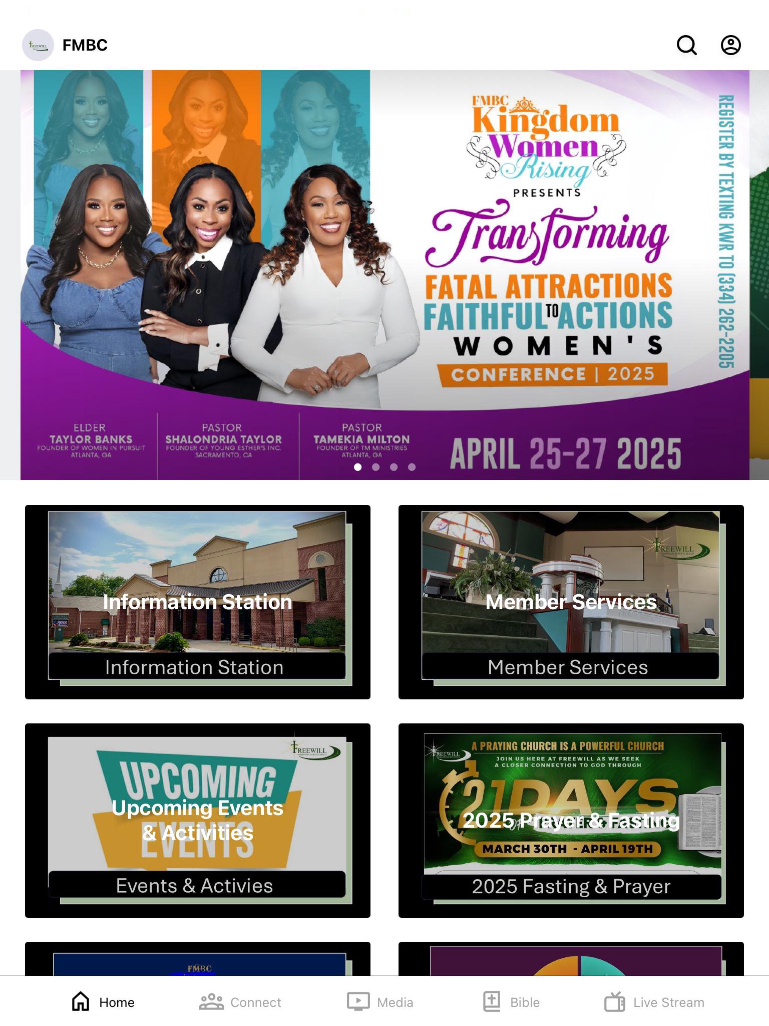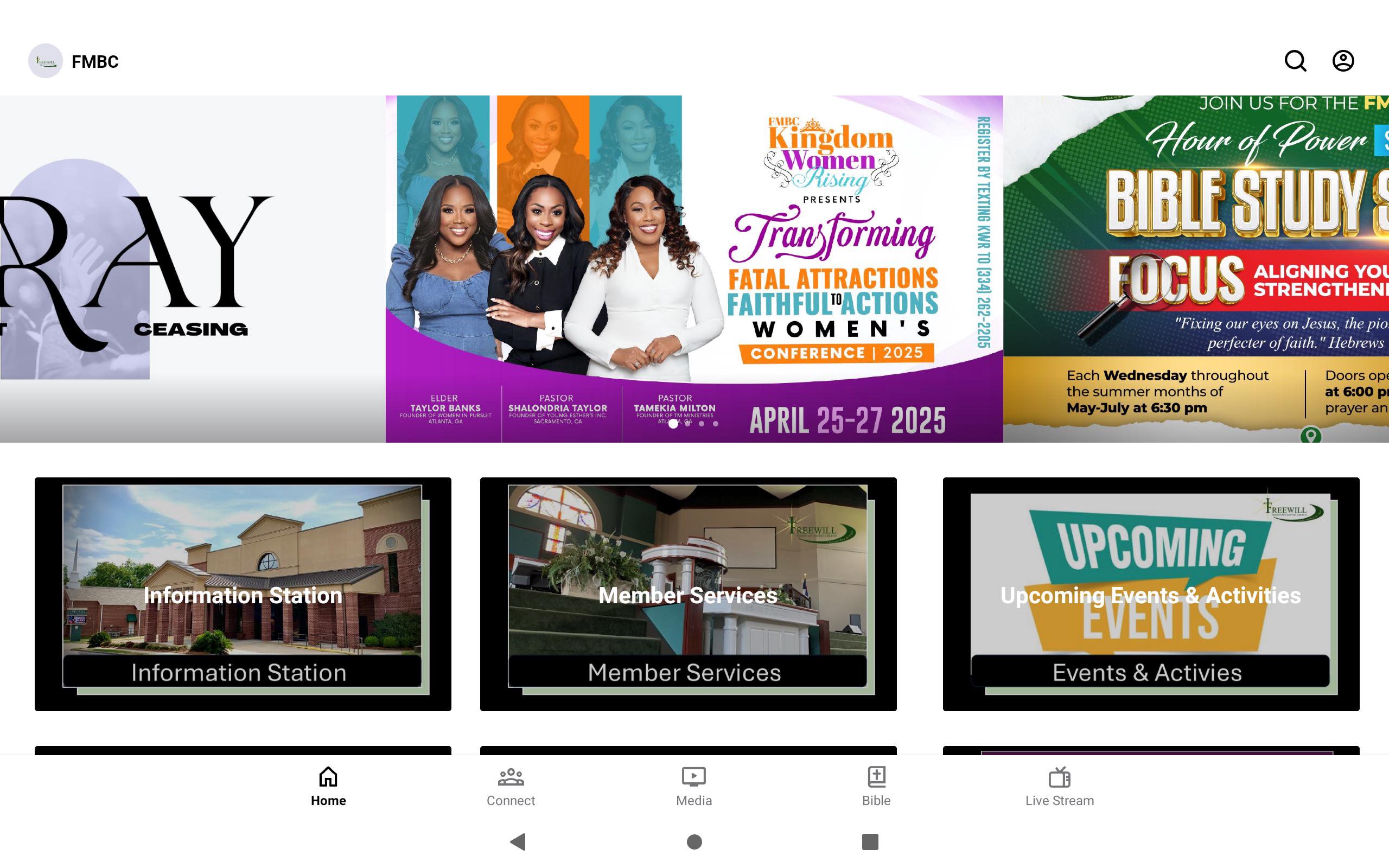Welcome to the official Freewill Missionary Baptist Church app. FMBC is a place where we Engage, Equip and Empower the people of God. This app will help you stay connected with the events, actives and life of the FMBC Ministry. With this app, you can watch or listen to past messages, stay updated with push notifications, read the bible, and view our calendar.