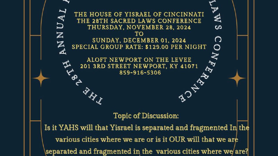 The House of YisraEL of Cincinnati presents the 28th Annual Sacred Laws Conference Thursday, November 28 2024 to Sunday December 1st 2024