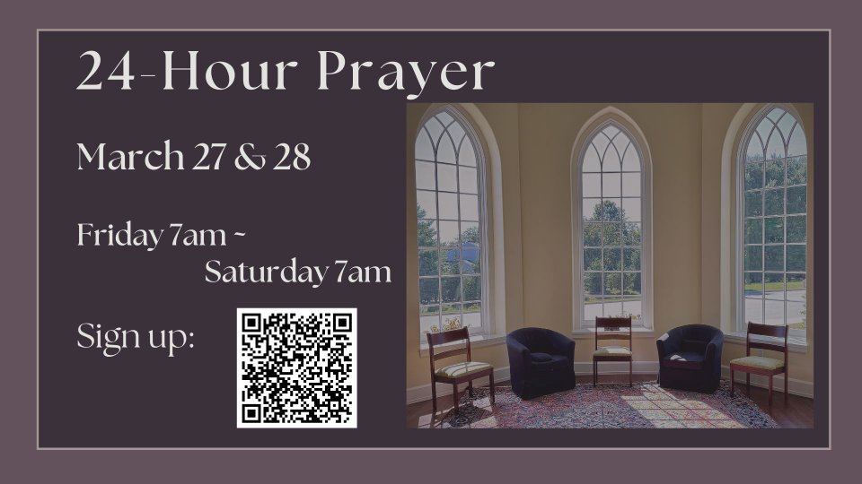 In preparation for Holy Week and to anchor our hearts and our hopes in God's faithfulness, we will be holding a day of 24-Hour Prayer beginning on Friday, March 27 (7am) through Saturday, March 28 (7am).