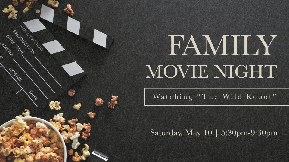 Come out for an indoor movie night for the whole family here at the barn hosted by the Jr High Ministry. The featured film is “The Wild Robot”. Dinner is included in the ticket and Concessions will be available, and all donations go towards the youth ministries.
