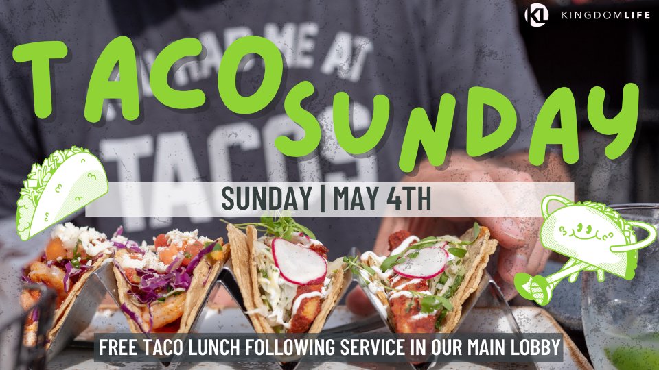 Invite your family and friends to church! Free taco lunch following service in our main lobby.