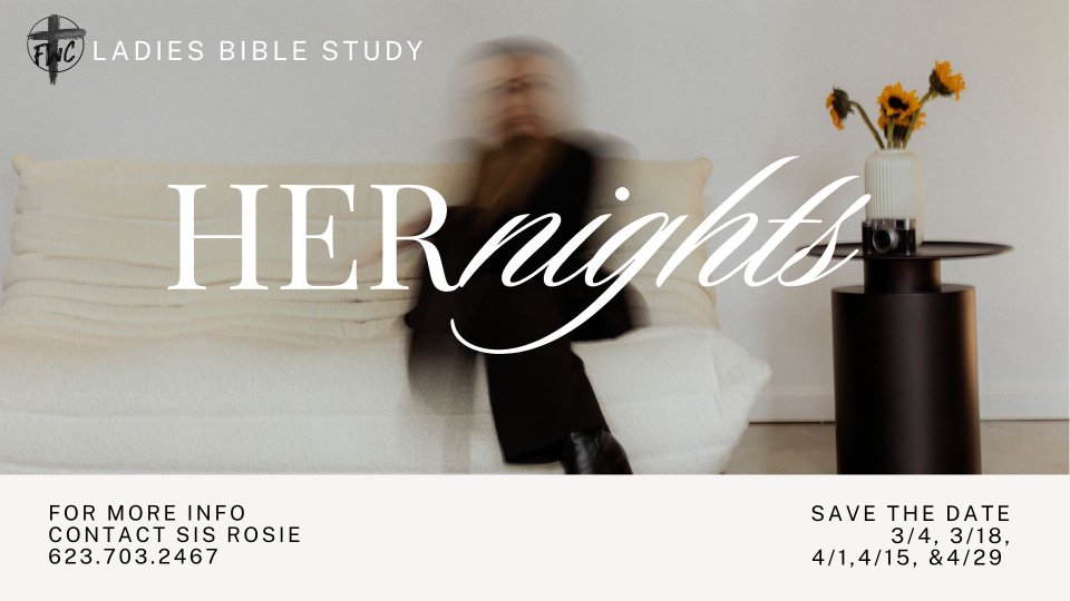Come and be a part of our FWC Ladies' Bible Study - HER Nights, where we explore the Word of God to understand His guidance on our everyday challenges. Women of all ages, from young to wise, are invited. Come with an open heart and a spirit of expectation, as God never ceases to inspire us with His divine and timely messages.