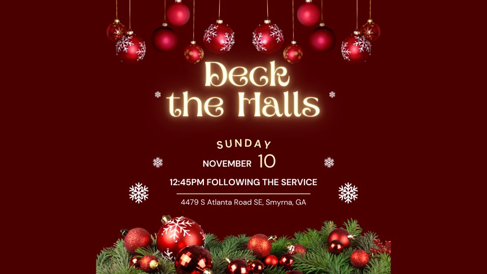 Come join us as we decorate our church home in the Christmas spirit for the holiday season! We want to transform our building into a Christmas marvel, and we need your help! All are welcome, we would love to have your fellowship, help, and input! We are looking forward to seeing you!