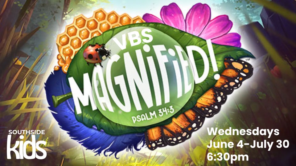 Each Wednesday night we will have a maxed out time full of games, snacks crafts, worship and exciting Bible stories! So bring the kids to VBS, invite some friends to small group and let's jump in and live life MAGNIFIED!