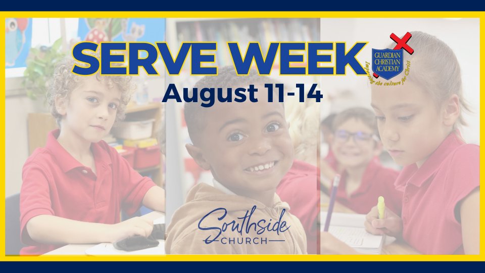 At Southside Church, one of our core values is being a family of families. From August 11-14, we have a special opportunity to live that out by supporting one of our own—Guardian Christian Academy. There are serve opportunities available Monday through Thursday from 8-10:30am or 5-8pm.