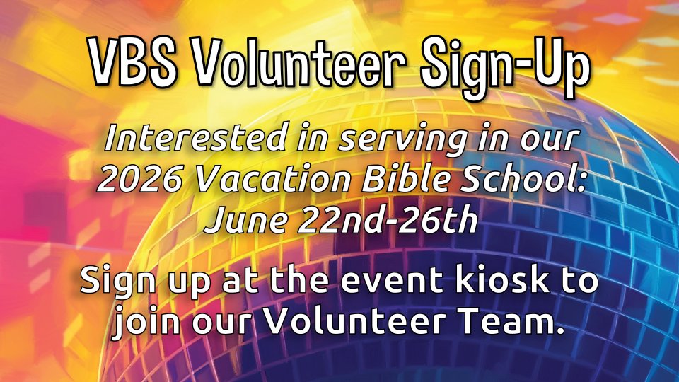 Interested in helping with our 2026 VBS program, sign up here to get connected.