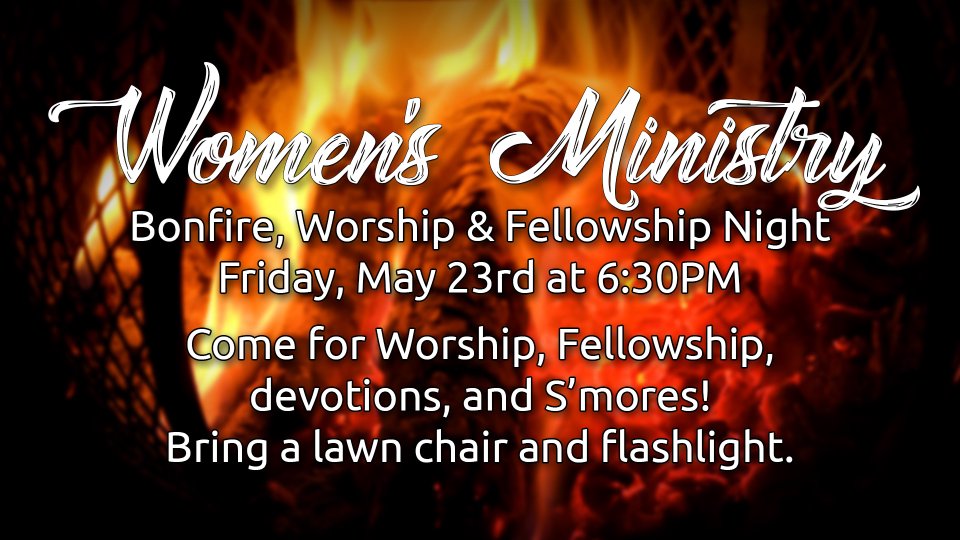 Come on out to a bonfire with all of the fixings, hotdogs, smores and more. Enjoy a beautiful evening under the stars with our sisters in Christ, as we worship our great God and share some time in a devotion. We will be gathering around the Firepit, located in the back of the building, near the garages.