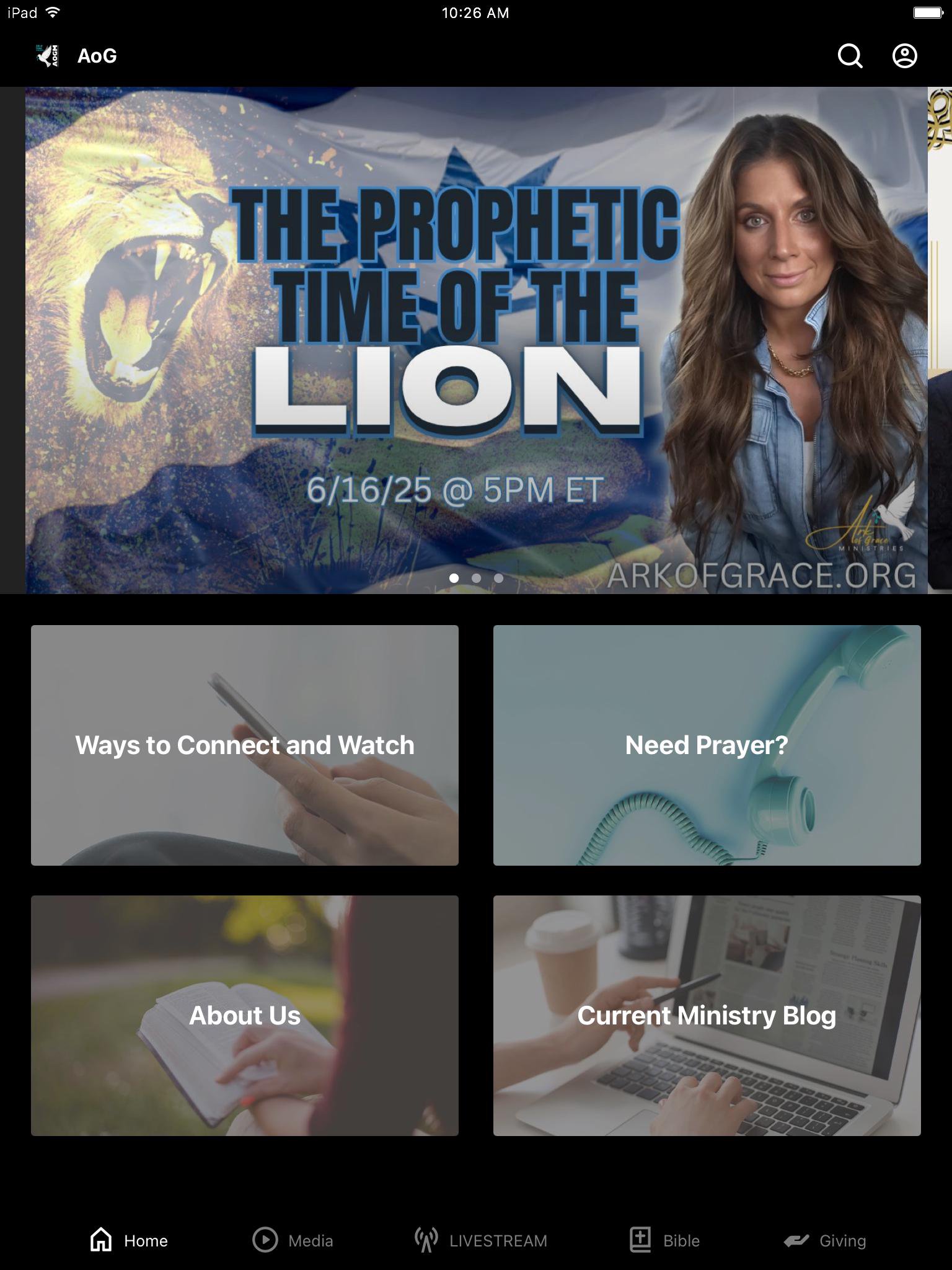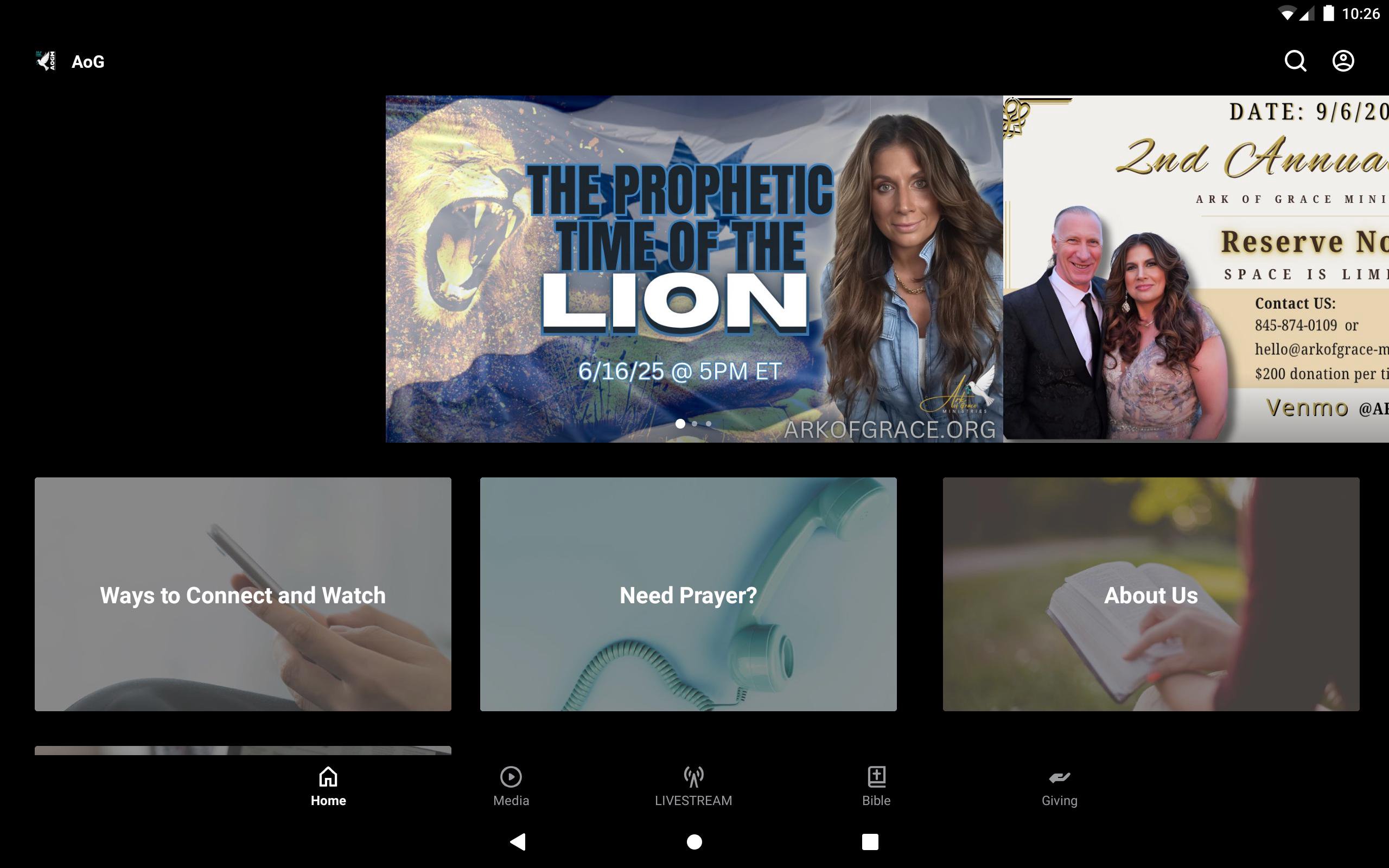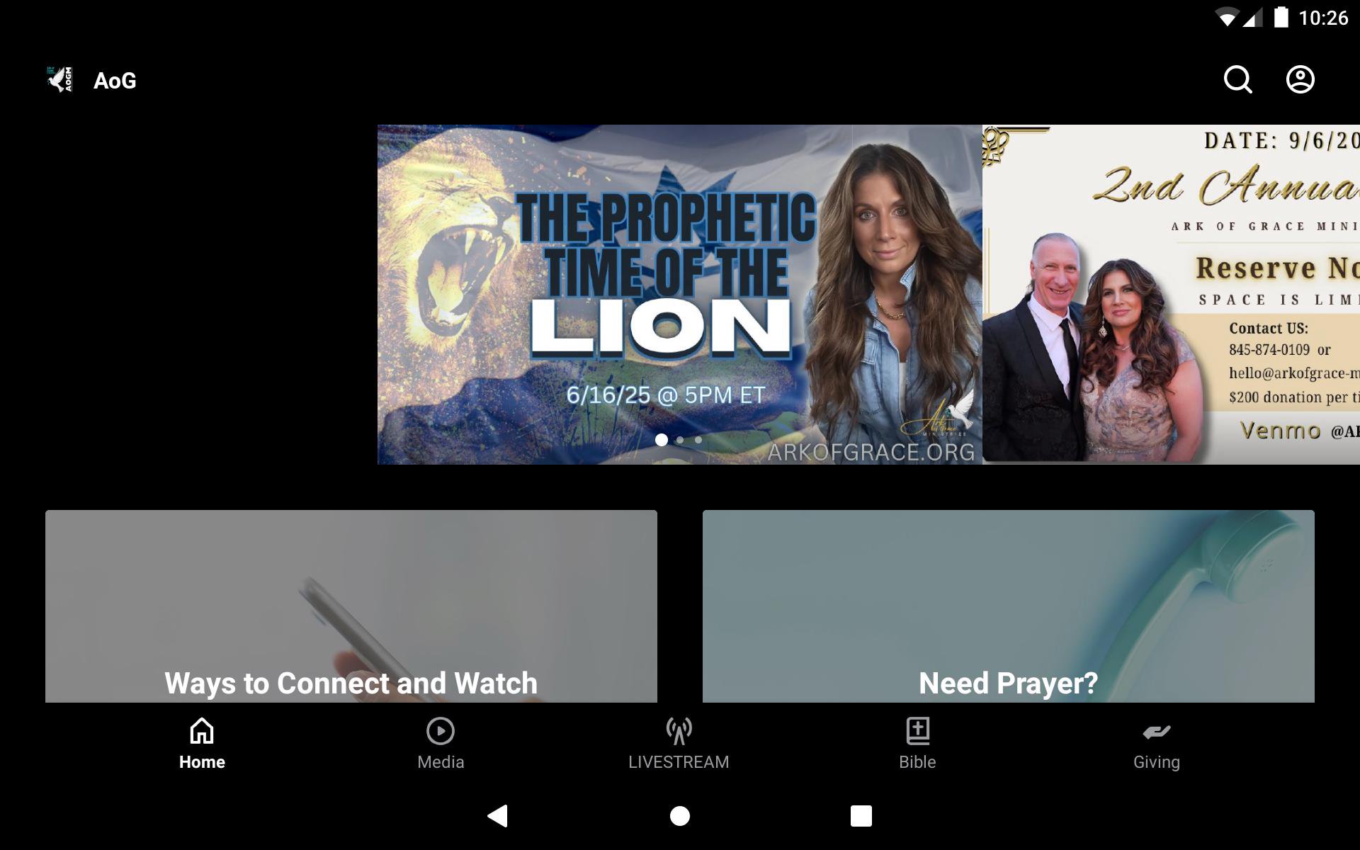 This app will help you stay connected with the day-to-day life of our ministry. With this app you can: watch or listen to past messages; stay up to date with push notifications; share your favorite messages via Twitter, Facebook, or email; and download messages for offline listening. Ark of Grace Ministries is located in the beautiful Hudson Valley and ministers to both people and animals, walking out the commission in Mark 16:15.
