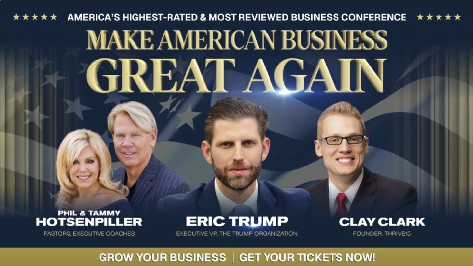 Influence Church is excited to host the Thrivetime Show Business Workshop with Eric Trump and Clay Clark on December 4–5, 2025, right here in Anaheim, California.
