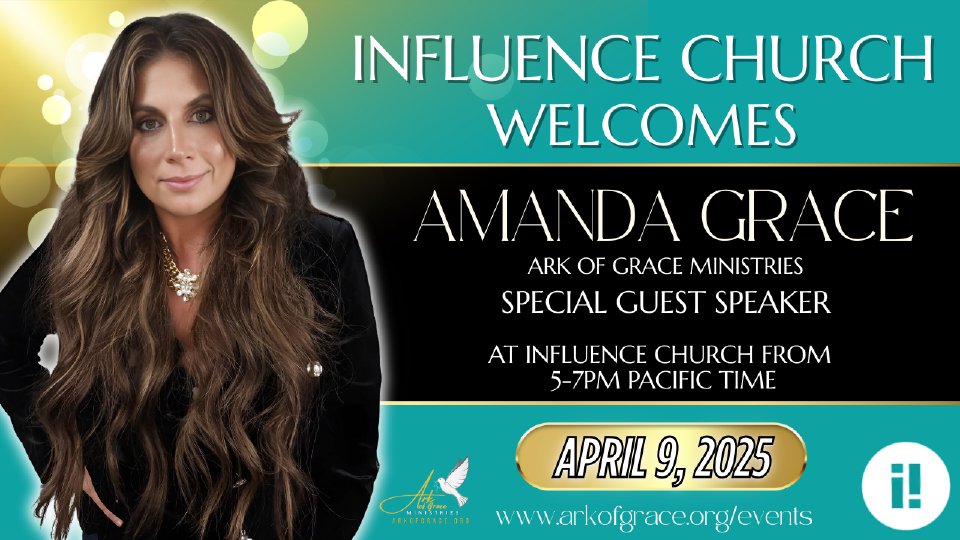 Join Influence Church on Wednesday, April 9th, at 5pm- 7pm PT for a special service with special gust speaker, Amanda Grace.