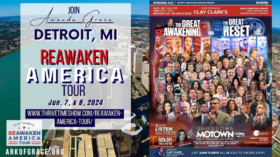 Get your tickets to the final ReAwaken America event before they're gone! Only 3000 will be sold for this event. We are heading to Detroit, MI. June 7th and 8th! For more information and to get tickets, go to https://www.thrivetimeshow.com/reawaken-america-tour/