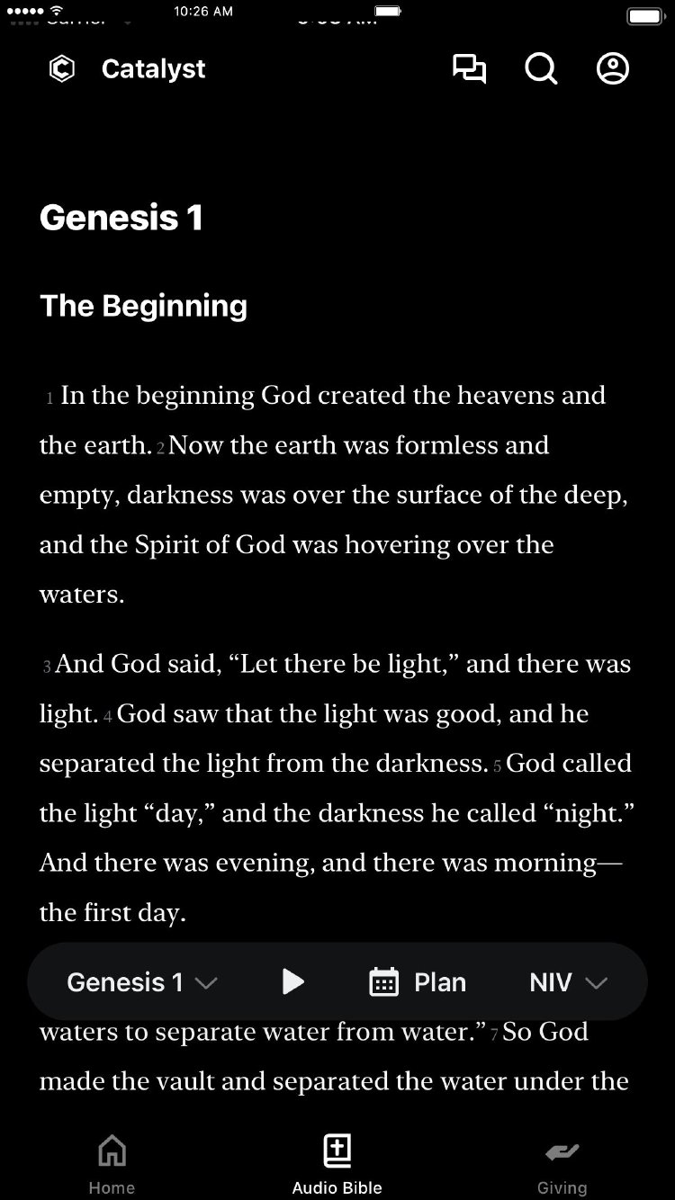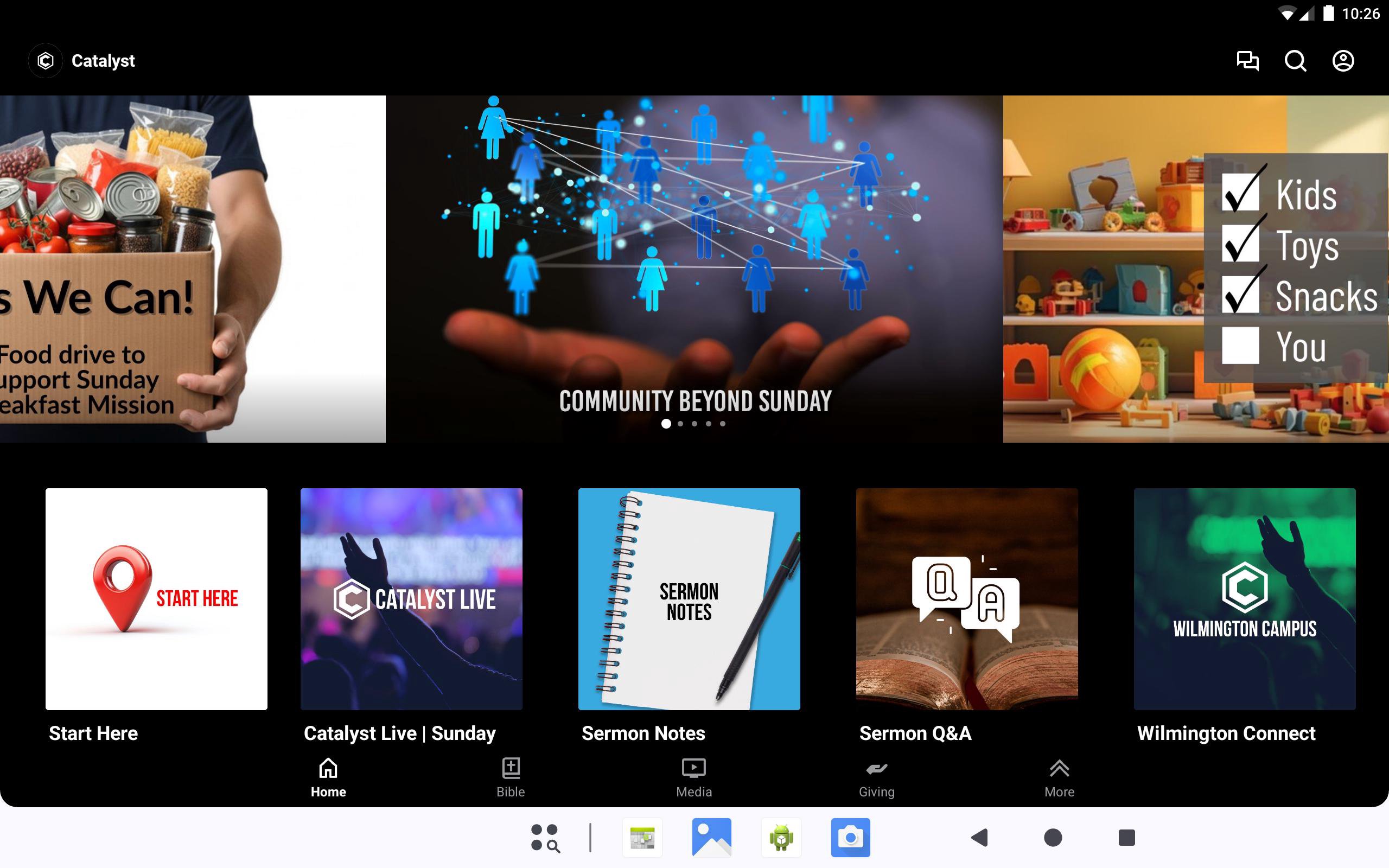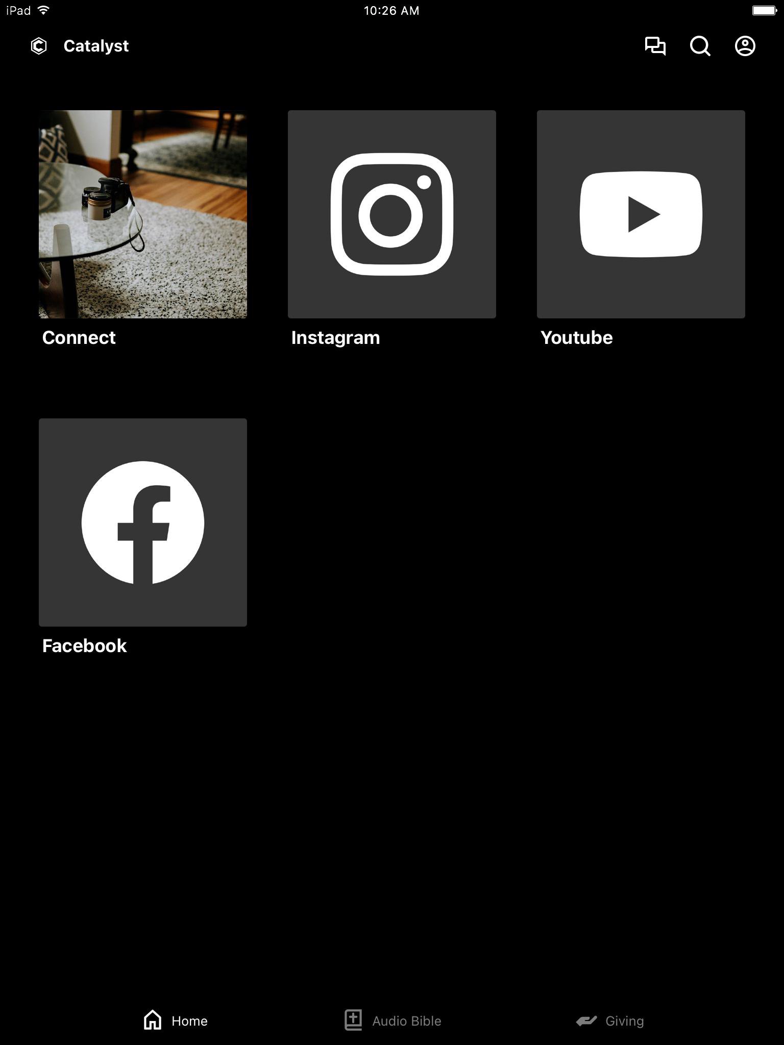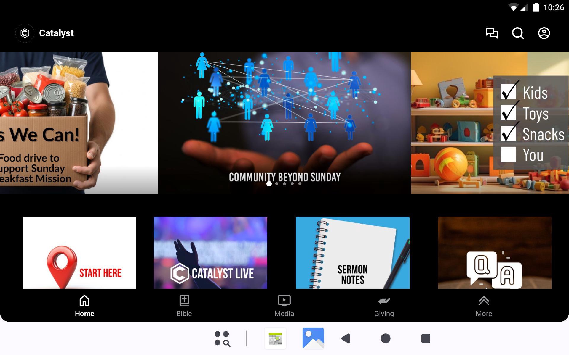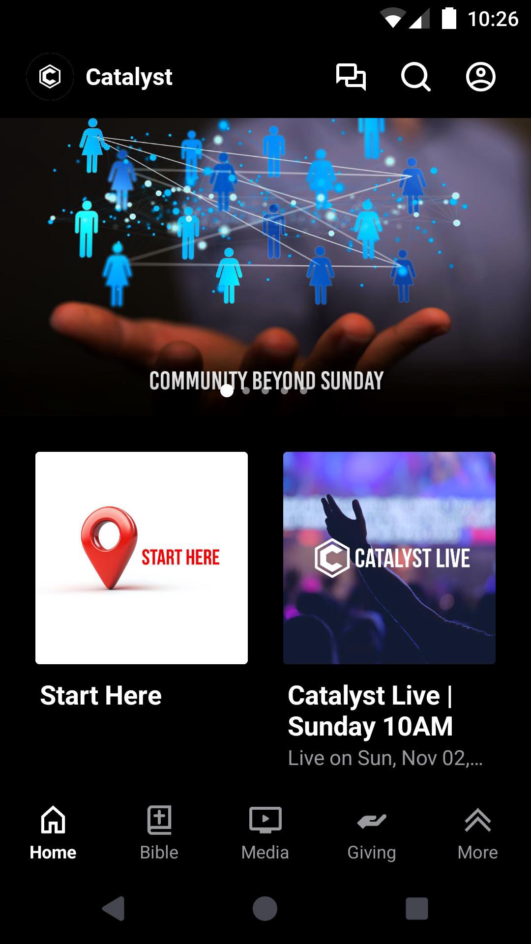 Content and resources to help you grow and stay connected to Catalyst. With this app you can: - Get connect with our connect card - Find us on Social Media - Read or listen to the Bible - Give securely through the app - Connect with other using our in app messaging