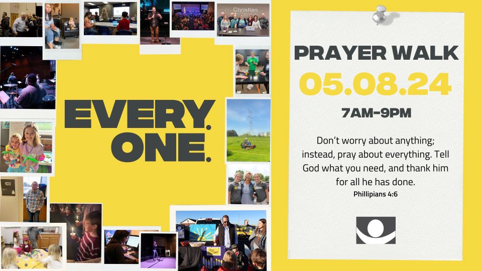 Let's come together as a church family to reflect and pray over who God has called First Christian Church to be. Stop in anytime between 7AM and 9PM to walk through a self-guided prayer experience.