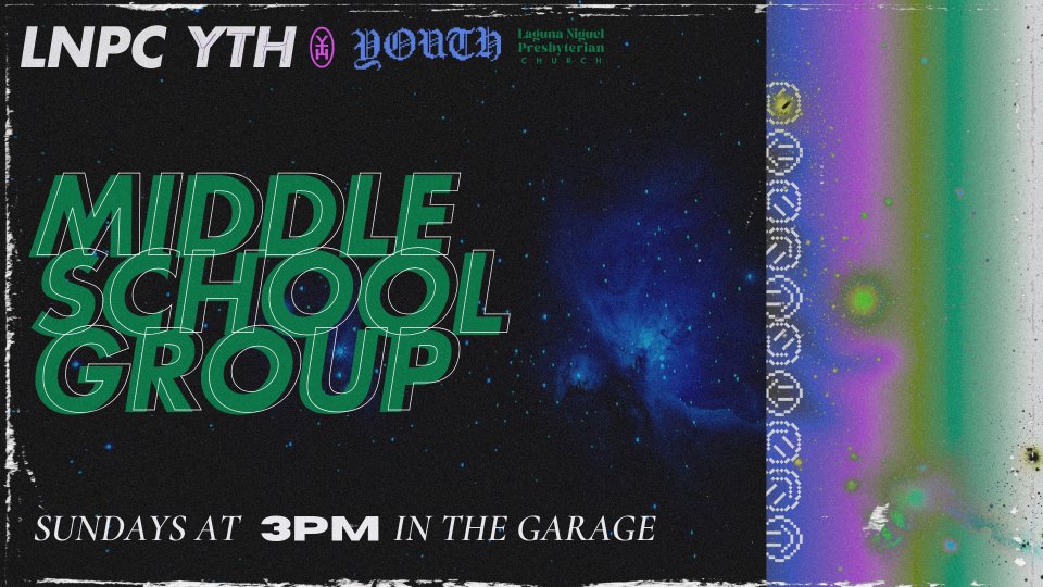 Join us every Sunday from 3-4pm in the Garage (our youth room) for an hour of fun, fellowship, and faith. Hang out with friends, dive into discussions, play games, and grow in your walk with Christ. Everyone in middle school is welcome—come as you are!