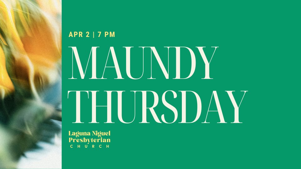 You are invited to a deeply meaningful and reflective Maundy Thursday Worship Service at Laguna Niguel Presbyterian Church. Join us at 7 PM as we gather to remember and celebrate the final supper of Jesus with His disciples. This service will include the observance of the Lord’s Supper, a time of communion, and a somber reflection on Christ’s sacrifice. Together, we will reflect on His command to love one another as He has loved us, and prepare our hearts for the journey to Easter. We encourage you to come with a spirit of reverence and gratitude as we walk through this holy night together.