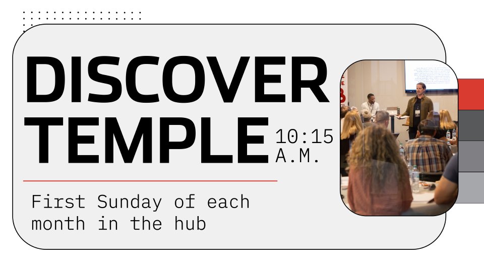 Want to know what Temple Baptist Church is all about? Are you considering making TBC your home church? Do you have questions about our vision, mission, and values? Do you want to connect in a group or find your place to serve? Then Discover Temple is for you! Discover Temple classes will be held in The Hub!