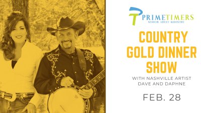 Nashville Country Gold – Dinner Show Join us for a special evening of “Nashville Country Gold” featuring Dave and Daphne, all the way from Nashville! Enjoy a night filled with great music, delicious food, laughter, and friendship in a warm, welcoming atmosphere designed especially for senior adults—and open to the public. 6:30 PM | Student Center $35 at the door | $25 advance This dinner show is the perfect opportunity to relax, connect with friends, and enjoy classic country favorites and inspiring stories from Nashville’s own Dave and Daphne. Special Note: PT/Senior couples who are registered for the 5 Love Languages Marriage Conference may attend the dinner at no cost. Bring a friend and come enjoy a night of food, fun, friends, and great music—we’d love to see you there!