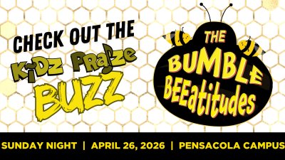 Don't miss this special musical! Our kids are working hard to get ready for this special evening. Jump into a world based on Jesusâs teachings on the Beatitudes in a brand-new musical, The Bumble BEEatitudes! As you enter Happy Hiveland, youâll meet Queen Bee, who communicates through dance moves, sporty bees that play buzzketball, the Royal Flowers, who perform as backup singers for the queen, and the visiting Beeanca that brings us into the story! For your older kids, there are skateboarding wasps and the Summer Tanagers, who are Gen Beakâ and have their own language that sounds suspiciously like Gen Z. Most importantly, The Bumble BEEatitudes is full of truth, teaching us the importance of receiving and showing mercy, hungering and thirsting for righteousness, and loving our enemies. Your kids will learn what it means to be poor in spirit and the importance of walking with God through difficult situations in life. Parents, if your kids are not involved in our Wednesday night programs, call me! Let's get them connected. It's not too late, Ms. Lori @ 850-572-1277.