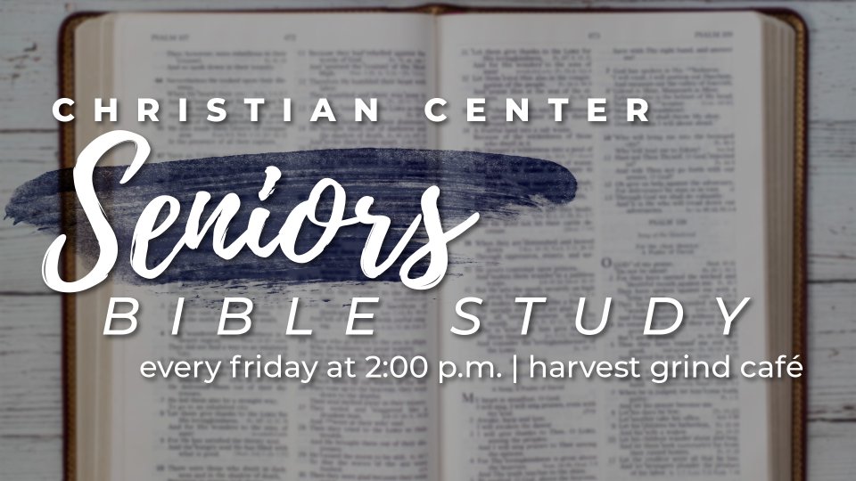 Join other senior CCC members for a weekly Bible study catered to your stage of life! Ron Johnson hosts a group of seniors who are dedicated to understanding and applying Scripture to their lives every single day, and you're invited! Just bring your Bible every Friday at 2:00 p.m. in Meeting Room B! Enter through Door C.