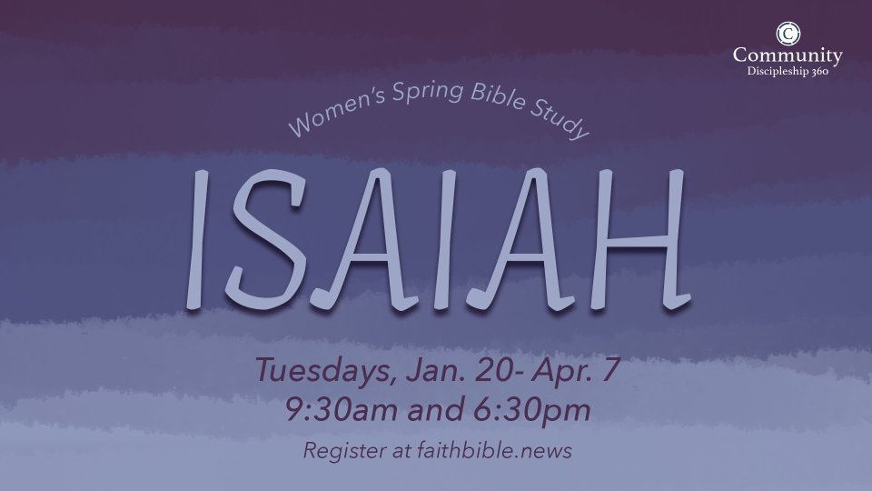 Explore the sweeping message of God’s holiness, hope, and redemption in our Spring Women’s Bible Study on the book of Isaiah. Designed to help women engage Scripture with clarity and confidence, this study will guide us through Isaiah’s powerful prophecies and their life-shaping relevance today. We will journey through themes of trust, restoration, and God’s faithful presence, gaining a deeper understanding of His character and a renewed confidence in His promises.