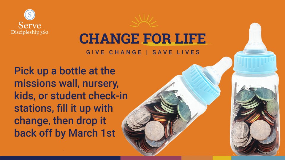 Please support this life-saving ministry by taking home a bottle today. As you fill it, remember to pray for PACN’s clients, employees, and volunteers. Return the Baby Bottle by March 1st to the On Mission Table located just below the Missions Counter.