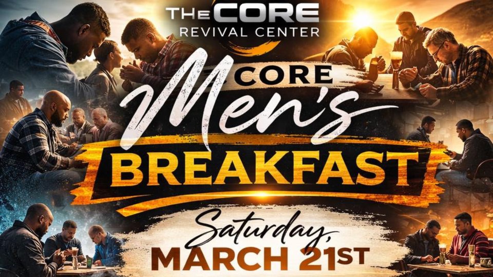 Men’s breakfast this Saturday at the Core Revival Center at 9am all men welcome.
