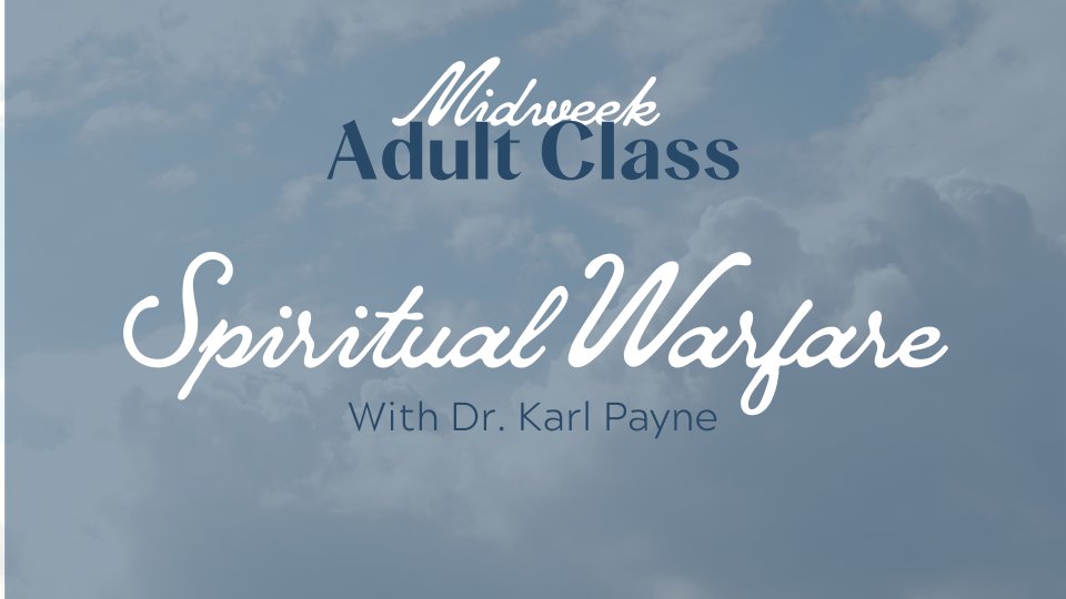 This adult class will be reading through Dr. Karl Payne's book, "Spiritual Warfare: Christians, Demonization and Deliverance, Republic Book Publisher, 2021." You're invited to join anytime throughout the 15-week study either in person or by Zoom.