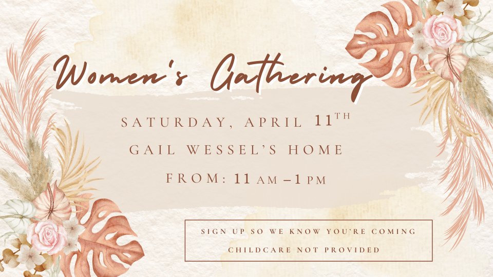 Calling all Unified Women! You are invited to join us for our April Women's Gathering. We will be meeting on Saturday, April 11th from 11:00AM - 1:00PM at the home of Gail Wessels.