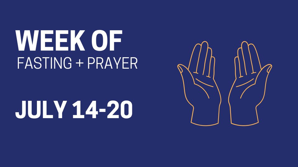 On July 14-20 together as a church family, we will enter a week of prayer and fasting. Please be in prayer about how you can join in this important week as we seek the Lord! We will join together for a special night of corporate prayer on July 16 at 7pm at the church.