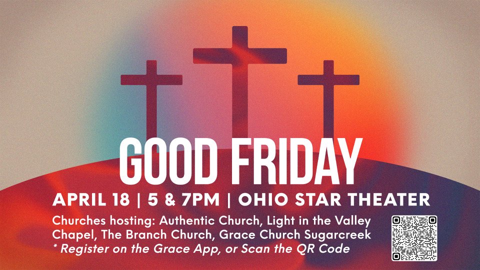 Join us for our Good Friday Service at Ohio Star Theater with surrounding churches. Seating is limited and signup is required to obtain your seat. Churches hosting: Authentic Church, Light In The Valley, The Branch, Grace Church Sugarcreek. Free register available using the link below