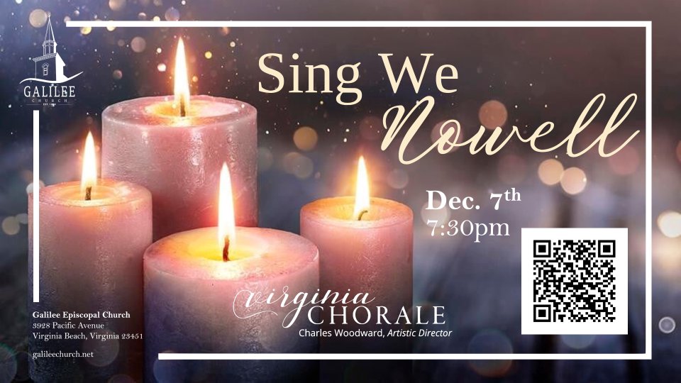 The peace of the season is captured in the Chorale’s first performances of A Winter Breviary by Indian-American composer Reena Esmail, and The Quiet Heart by June Collin. Familiar carols and holiday selections round out this intimate concert. Sing We Nowell - a beloved December tradition in Hampton Roads. Tickets available for purchase at vachorale.org or with Galilee's discount here on the app.