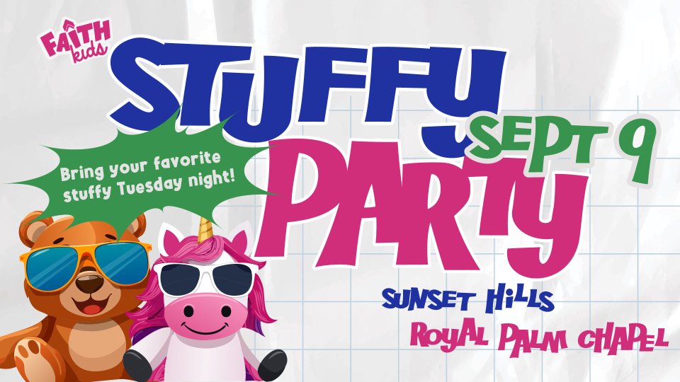 Don’t miss this night of fabulous furry fun! It’s a Faith Kids Stuffy Party during Tuesday Night Services on September 9th. Try your skills at hilarious stuffed-animal-themed games, enjoy delicious treats, and construct a NEW mini stuffed friend (Build-a-Bear style.) Bring along your favorite stuffed animal friend, and invite a real one, too! We’ll see you there!