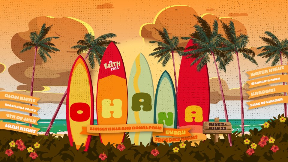 Ohana means family... and in Faith Kids, family means FUN! We’re mixing timeless Bible lessons with everything kids love about summer. Our weekend services start the story, but Tuesday nights are where the party’s at: themed nights packed with popsicles, parties, and plenty of surprises! There’s even a special summer plan for your littlest ones in Tots of Faith. Don’t miss a week! Ohana runs June 3rd to July 22nd, and your kids will want in on every moment.