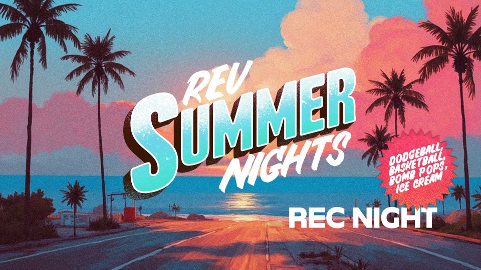 This summer, your Wednesday nights just got an upgrade. Students in 6th-12th grade, REV Summer Nights are here with something new each week. Expect a fresh theme with fun activities, cool snacks, and a place to hang with friends. Whether it’s your first time or you never miss a week, you’re gonna want to be there.