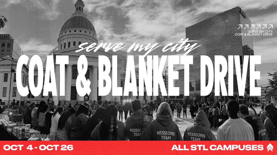 Help us keep families warm this winter! Between October 4th–26th, bring new or gently used coats, blankets, hats, gloves, socks, and shoes to any St. Louis Faith Church location. Please note: all items MUST be returned no later than October 26th so our team can prepare for distribution with Serve My City on November 1st.