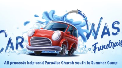 Hey Paradise family! Support our youth as they prepare for their first fundraiser for camp. They'll be hosting a carwash, so come and relax either outdoors or indoors with pastries and coffee while your car is being cleaned.