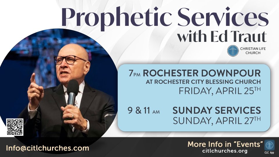 We are thrilled to host Ed Traut for a special Friday Downpour service on April 25th at 7 pm in Rochester, as well as two anointed services on Sunday, April 27th at 9 am and 11 am at Christian Life Church.