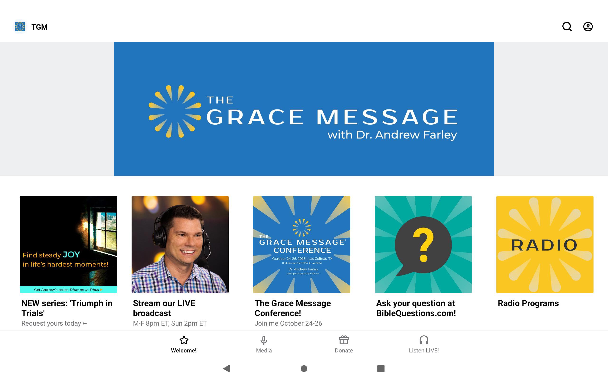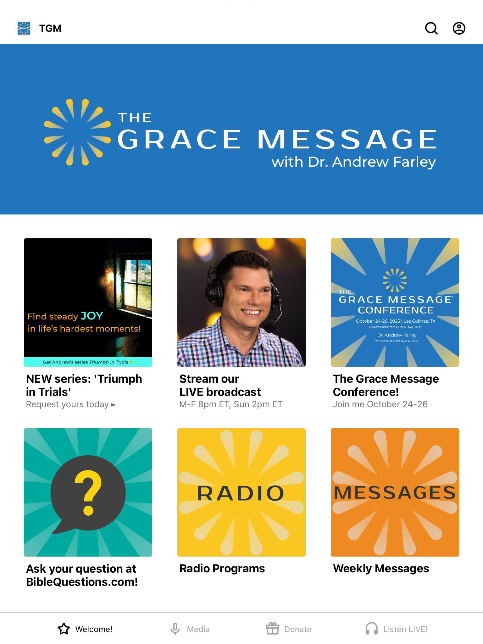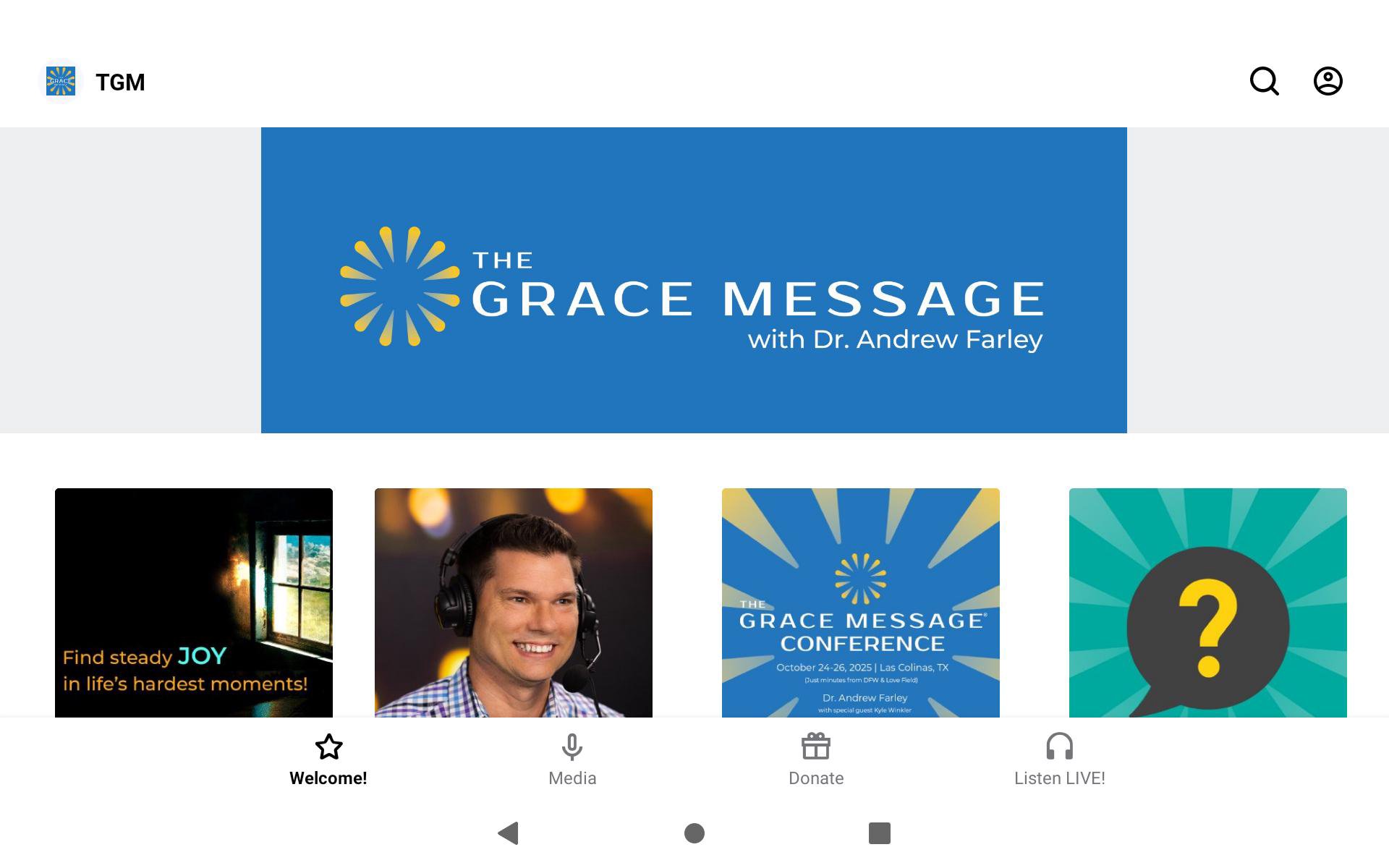 Jesus plus nothing. 100% natural. No additives. The Grace Message with Dr. Andrew Farley app gives you immediate access to loads of audio and video content from Andrew Farley, bestselling Christian author and pastor. • Weekly audio / video messages • Weekly archived broadcasts from our Sirius XM show (live every weeknight at 8pm Eastern (5pm Pacific) and Sundays at 2pm Eastern, Channel 131) • Find and follow Andrew on FaceBook and Twitter. • Keep up with The Grace Message and what's happening now. The Grace Message with Dr. Andrew Farley was created with The Church App by Subsplash.
