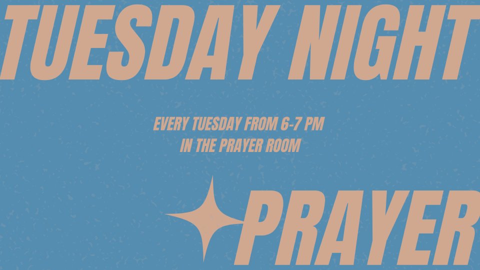 Join us as we come together for weekly prayer! Every Tuesday night from 6-7 PM, we will be gathering to pray and seek His face. This meeting will be in our prayer room, located in the elevator room of the second floor. No childcare will be available, but your kids are more than welcome!
