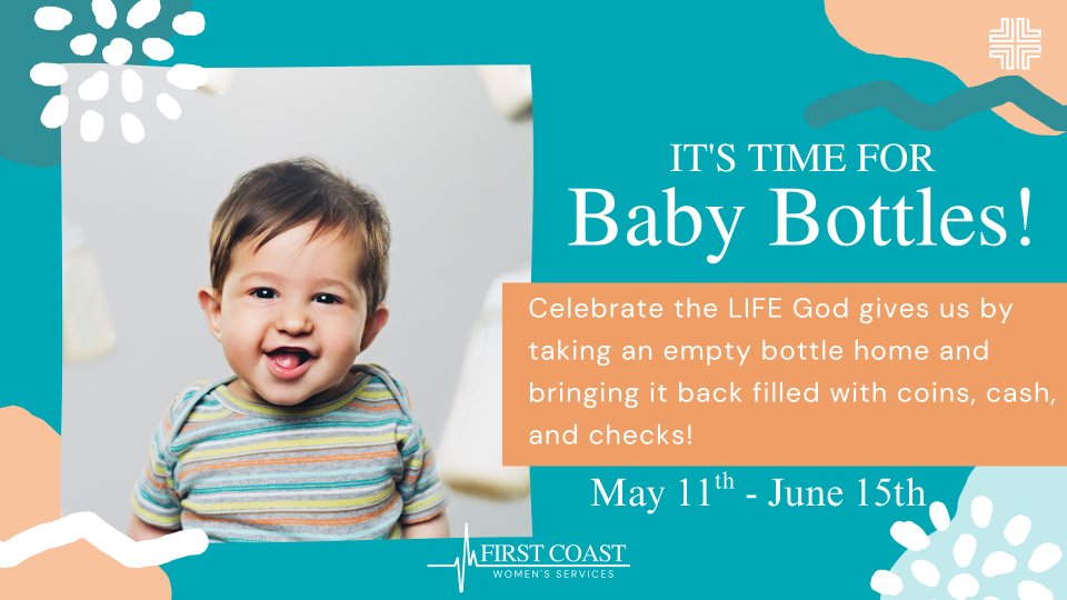 Empty bottles are filled with spare change, cash, or checks. The money raised allows First Coast Women’s Services to provide material support and much-needed supplies. Every cent helps serve more clients and save more lives like the ones pictured (right)!