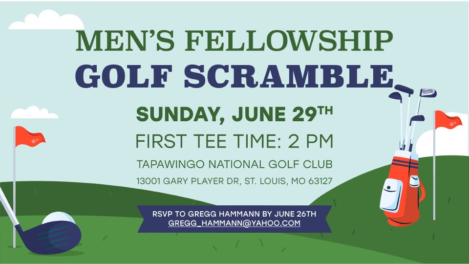 Join us for a Men's Fellowship golf outing at Tapawingo Golf Club on Sunday, June 29th. Tee times begin at 2 p.m., so you'll have time to attend the morning service before heading to the course! . $60 is paid when you check in at the pro shop.