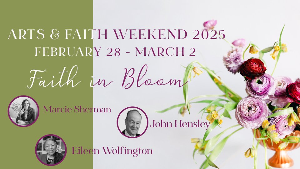 Join for this year's Arts & Faith weekend, when we will explore opportunities to experience God through Christian practices integrating Mind, Body, and Spirit. Cost: $25 for Saturday only, includes catered lunch