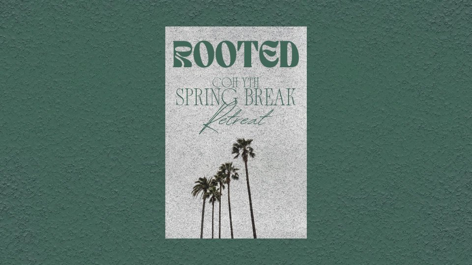 Annual COH YTH Spring Break Retreat! The theme of this year's retreat is Rooted, exploring what it looks like to follow Jesus in a deeper way and using the imagery throughout the bible of plant life, trees, etc. flourishing when being "rooted" near living waters (Jesus). The two days will consist of worship, teachings, guided reflection times, fun, and serving opportunities!