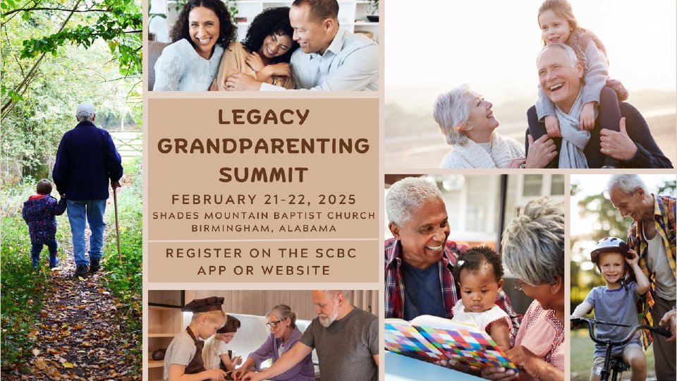 Grandparents (of all ages!), join us in Birmingham, Alabama for a weekend of worship, encouragement, and fellowship with other Grandparents at the 2025 Legacy Grandparenting Summit. The Summit will be held at the beautiful Shades Mountain Baptist Church on February 21st and 22nd, 2025.