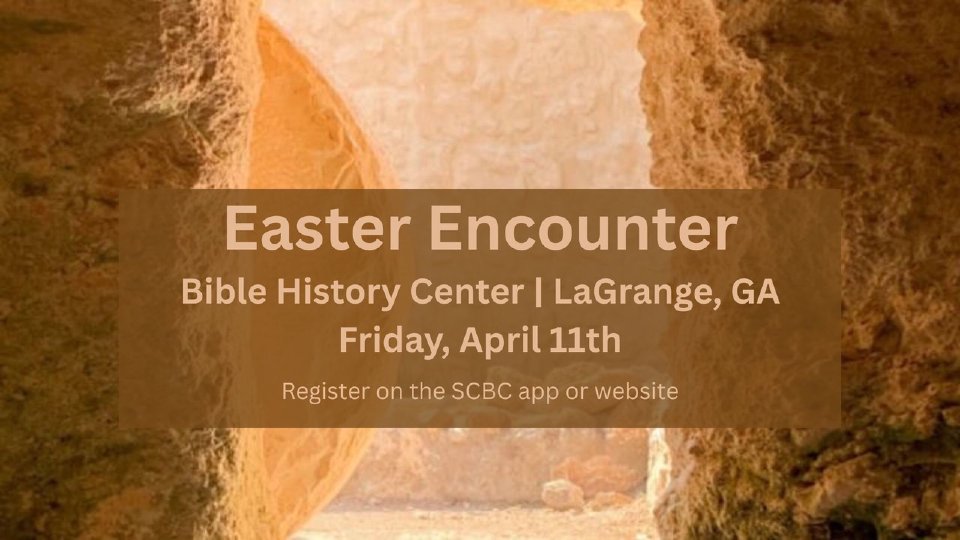 Senior Adults, join us for an amazing Easter Encounter at the Bible History Center in LaGrange, Georgia on Friday, April 11th. We will leave the church parking lot at 6:30am. You are welcome to ride in the church transportation or take your own vehicle. Just remember the one hour time difference if you drive on your own and meet us there. Please indicate in the sign up if you will be taking your own vehicle or with the church transportation. Cost is $75 per person. Included in the cost is a meal experience (details below). Space is limited for the trip. We expect to be home around 4pm. Registration for event will close on Thursday, April 10th. For more information please see Bryan Bice.