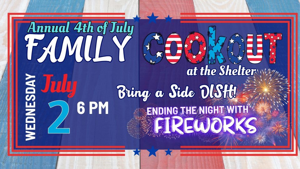 Join us for a fun-filled Independence Day celebration at the Shelter, weather permitting! The festivities kick off at 6 PM with a cookout, followed by various exciting activities planned for the evening. Don't forget to bring a side dish or dessert, and a lawn chair to make the most of the event. We'll conclude the night with a spectacular fireworks display!