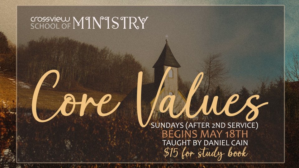 May 18th Sundays after 2nd service in MPR Join Daniel Cain as he will be leading our first Core Values class. Students will learn what it means to be a Christian, what it means to be a Disciple, what the Church is, and how all of those things play out in the life of a Christian being discipled in the local church.
